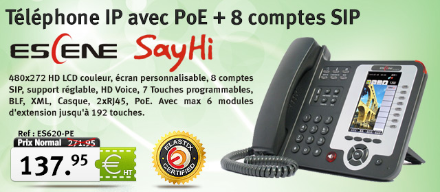 Le téléphone IP Ecence Say Hi a 8 lines ES620-PCouleur 8 compte SIP