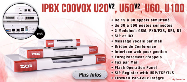 Nouvel IPBX de 20 à 500 postes FXO,FXS, GSM, BRI ou E1Zycoo CooVox U Series