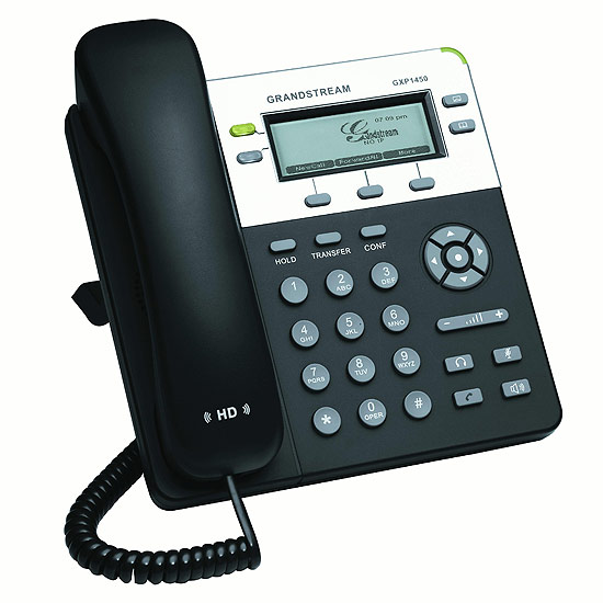GXP1450 est le téléphone IP d'entreprises de la nouvelle génération avec 2 lignes à 2 comptes SIP, un écran LCD graphique 180x60 à rétroéclairage, 3 touches XML programmables (soft-keys), 2 ports réseaux avec PoE intégré, et conférence à 3.